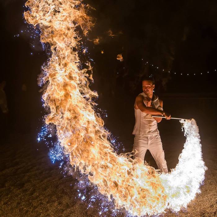 G-Force was very professional we had an exciting performance with his awesome fire tricks. The ambient music was so mesmerizing and when you’re watching the show you feel so relaxed and at peace. There was also his safety measures assistant right by his side. Gregory is a genuine person with a great spiritual vibe. This guy never stopped smiling through out his performance, impressive. I recommend him 100%.